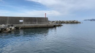湾奥の漁港で、東西、南の山に囲まれているので北風以外に強いエギングポイントになります.