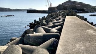 南側の大波止 根本部分はシモリがキツく釣りにならない エギングが可能なのは先端近くのみ