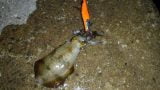ここではアタリが分からずシャクリ始めでイカが乗って